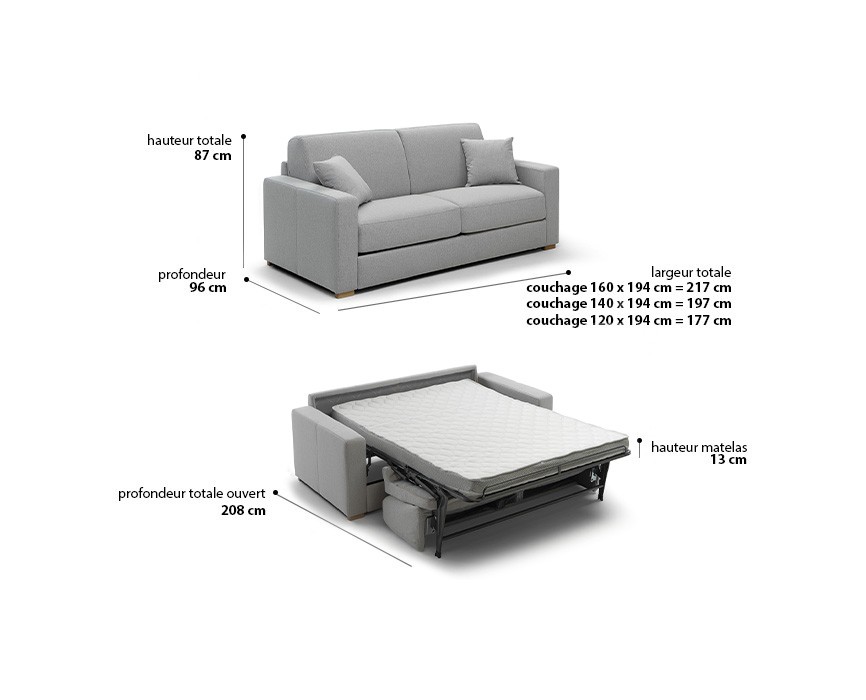 - L195xH87xP96cm - Ouvert 208cm