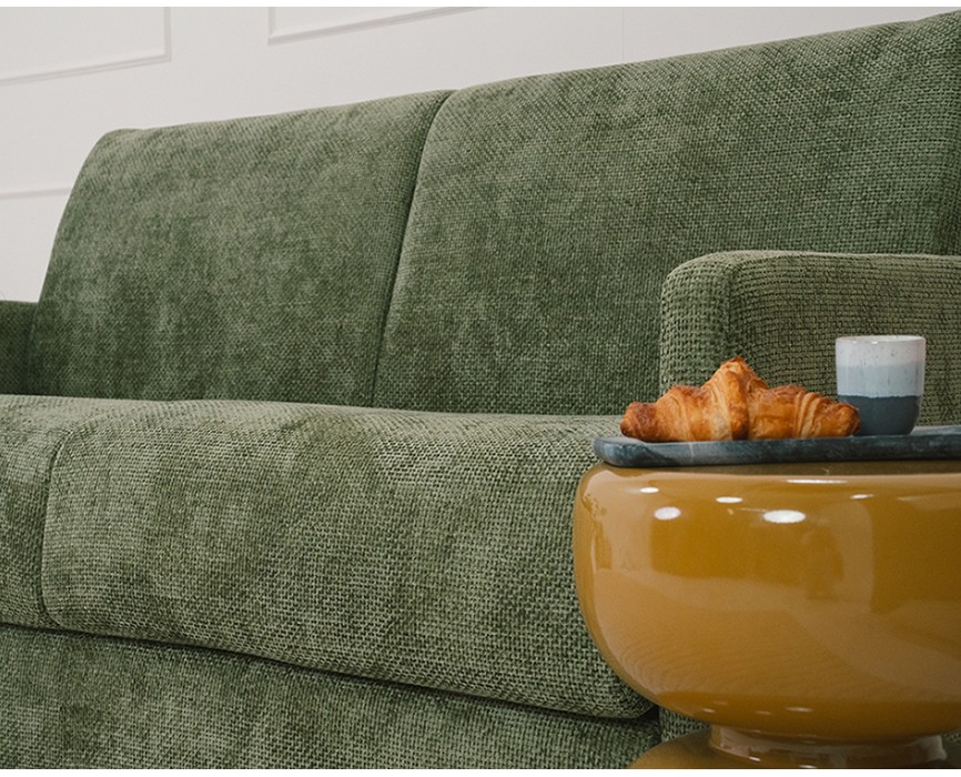 ALMA, le canapé convertible express en tissu chiné est fabriqué vers Milan dans nos ateliers.