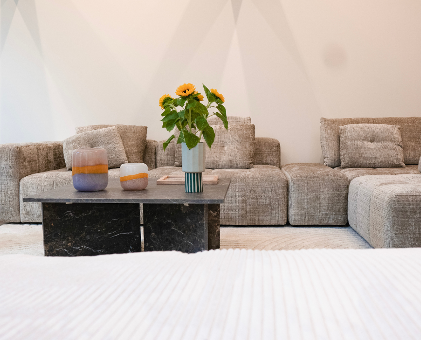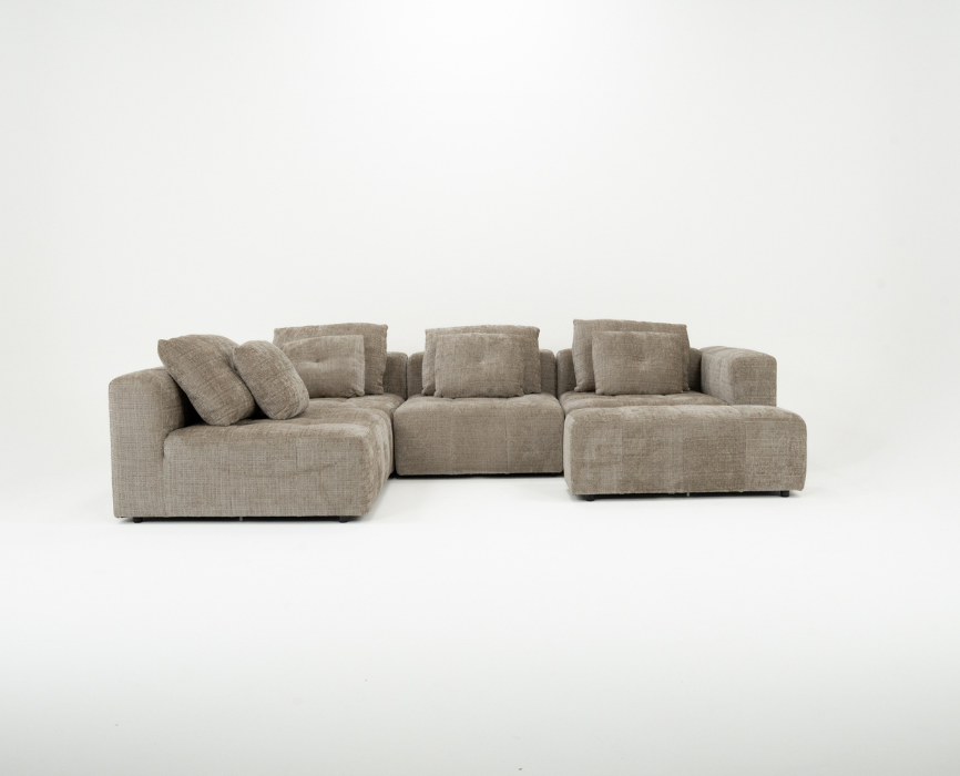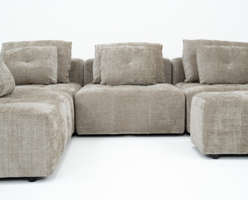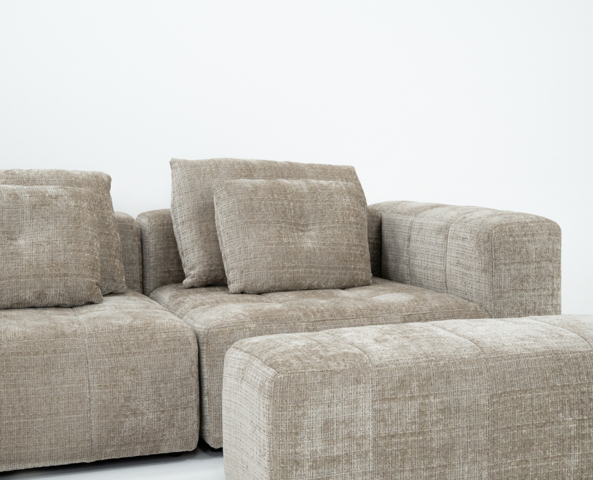Ce canapé modulable est proposé ici dans une configuration préétablie, pensée pour s’adapter à la plupart des intérieurs. Il est composé de modules fixes, mais peut évoluer selon vos envies. Grâce à son système d'accroche, les modules sont correctement fixés et restent immobiles.